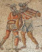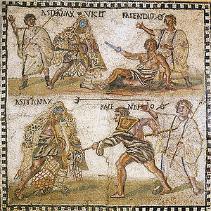 - Gladiatoren die elkaar op leven en dood bevochten. Hier ging het om, het waren de sporthelden van nu. (Wanneer je als gladiator lang genoeg overleefde om bekend te worden)