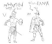 Veel van de gladiatoren waren naar wapenuitrusting, wapens en vechttechnieken losjes gebaseerd op door Romeinen overwonnen volkeren.