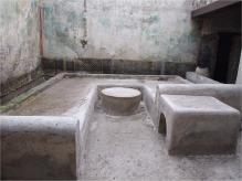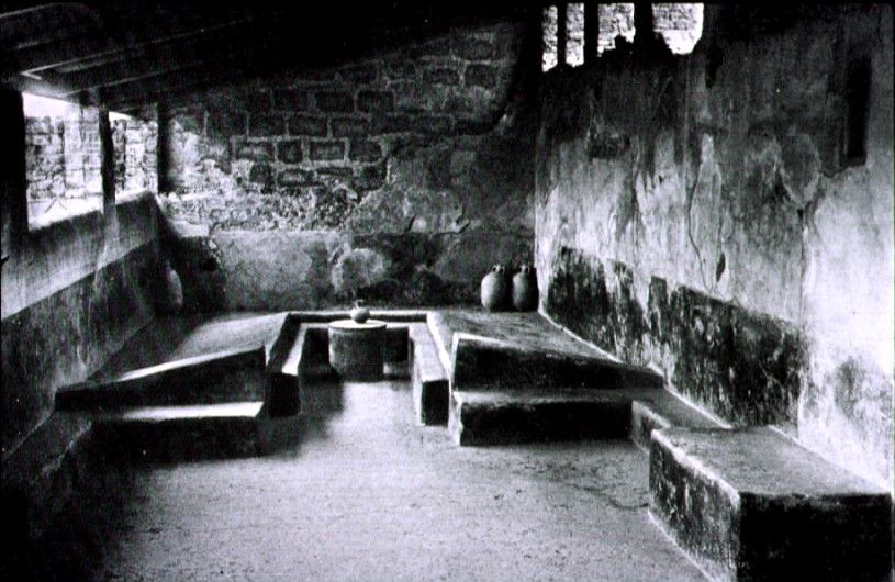 Er zijn in Pompeii veel triclinia gevonden met vaste, gemetselde aanligbedden en tafels.