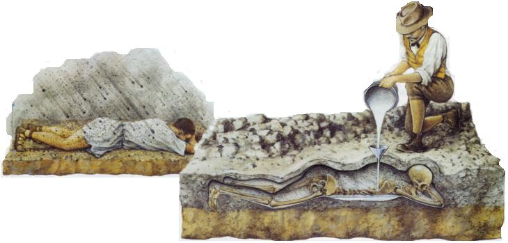 vergane lichaam. Fiorelli bedacht dat deze holtes als een soort mal konden worden gevuld met gips