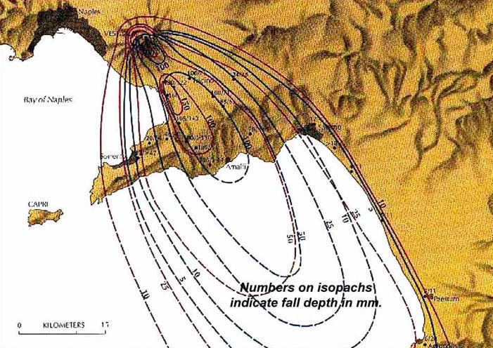 Pompeii opeens ver landinwaarts lag. Boven Herculaneum werd het dorpje Resina gebouwd. (Onder