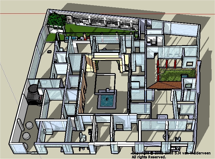 Bijna de hele rechterkant van het atrium. Je ziet dat het allemaal veel kleiner is