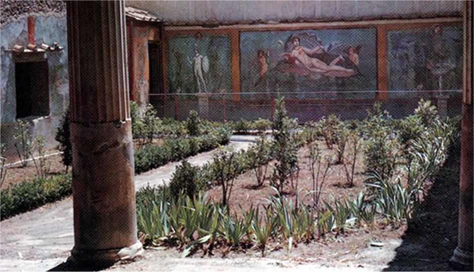 E...Exedra (tuinkamer, vaak met apsis= halfronde nis)