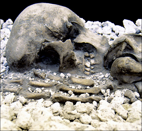 Dit gebeurde in eerste instantie met Pompeii. In zeer korte tijd regende het 4 meter puimsteentjes en rotsblokken!!!