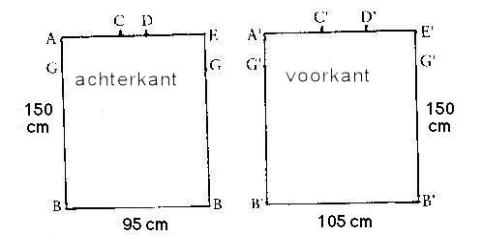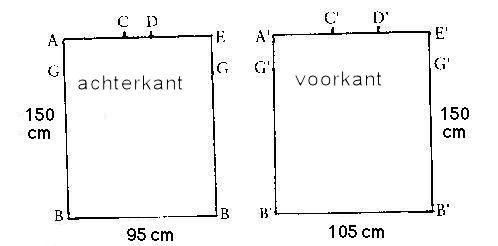 dan de achterkant. (ongeveer 5cm aan elke kant meer)
