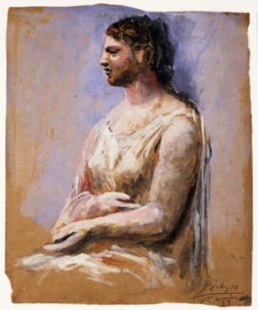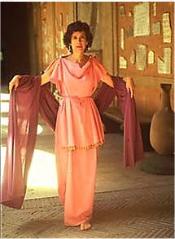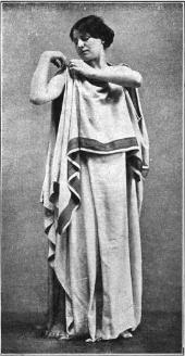 < Hier zie je op een model uit de jaren 30 hoe elegant een PEPLOS eruit kan zien.